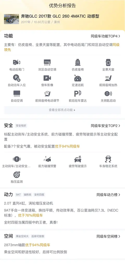 综上所述的新车含税价、用车成本、市场行情、优势分析、同款比价等数据仅供参考。在配置部分,因为二手车非标品,车辆可能会存在配置改装的情况,具体车况信息需要线下结合车辆实际情况进行综合参考。