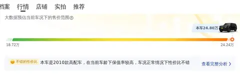 在市场行情价方面,这辆普拉多 2010款 4.0L 自动VX的市场行情价是18.72万-24.24万,它的报价则是24.80万,报价虽然合理,但还是有点偏高。
