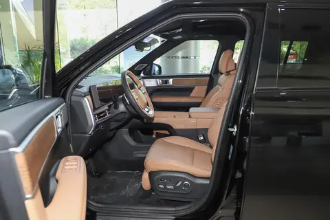 内饰的设计在注重科技感的同时,也比较注重实用性。中控台中央下方保留了较多实体按键,可用于控制空调、音量、自动驻车、自动启停等,提升了驾驶的便利性。台面上搭载了悬浮式的曲面双联屏(由均为12.3英寸的液晶仪表盘和中控屏组成),配10英寸的HUD抬头显示系统。车机支持远程车辆控制、车联网、OTA升级、语音免唤醒和连续性语音识别等功能。