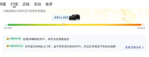 报价低于市场行情价,普拉多 2006款 4.0L 自动VX的市场行情价是10.79万-13.61万,它的报价是11.98万,所以报价在市场行情中偏低。同时它的保值率也高于同级车。