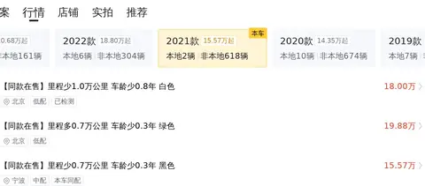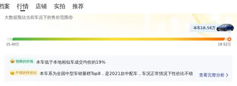 市场行情:根据懂车帝大数据分析,目前这款车的二手车市场行情在15.52-18.79万之间,本车的售价为18.58万,处于相对合理的区间内。同时,本车是2021款中配车,车况正常情况下性价比还是不错的。当然,具体的售价要看车辆的车况、里程数及上牌年限而定。