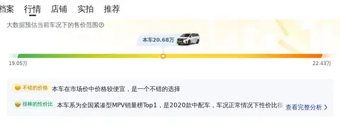 报价相对较低,因为别克GL8 2020款 ES陆尊 653T 舒适型的市场行情价是19.05万-22.43万,它的报价是20.68万,所以价格上有优势,同时59.66%的保值率也高,因为同级车的仅仅是52.66%。