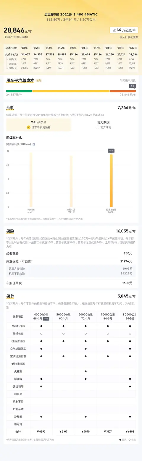 在不考虑贷款利息的情况下,预估的三年平均用车成本为30,507元/年,这是基于当前油价为9.58元/L的假设下计算得出的。然而,请注意,受市场供需关系的影响,实际用车成本可能会有所波动。