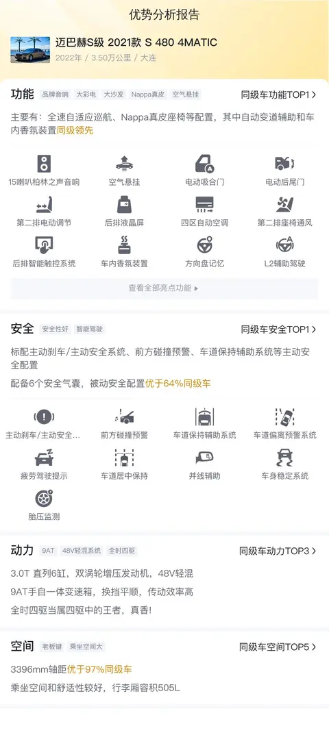 通过懂车帝的大数据分析,我们可以看到这款车型在同级别车型中在舒适性、动力和操控方面处于优秀地位。接下来,我们将分析这款车的产品特点。