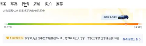 报价合理,因为它的市场行情价是20.77万-24.31万,它的报价是23.98万,所以价格上有优势,同时保值率也高。