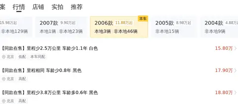 普拉多 2006款 4.0L 自动VX,新车含税价为64.18万,而现在的二手车报价是16.30万,2007年11月首次上牌,在此期间过户2次。