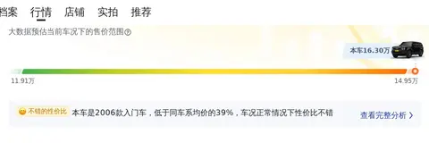 报价高于市场行情,因为普拉多 2006款 4.0L 自动VX的市场行情价是11.91万-14.95万,它的报价则是16.30万,价格上显然没有优势。