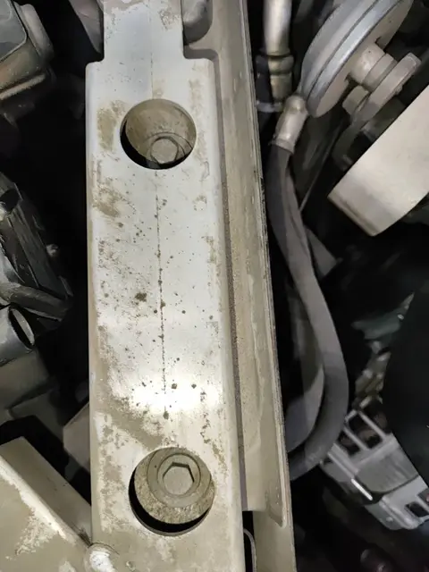 在重大事故检测中,水箱框架处有变形,左前翼子板内衬处有喷漆修复,但不是事故导致。