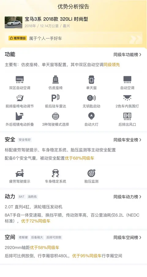 综上所述的新车含税价、用车成本、市场行情、优势分析、同款比价等数据仅供参考。在配置部分,因为二手车非标品,车辆可能会存在配置改装的情况,具体车况信息需要线下结合车辆实际情况进行综合参考。