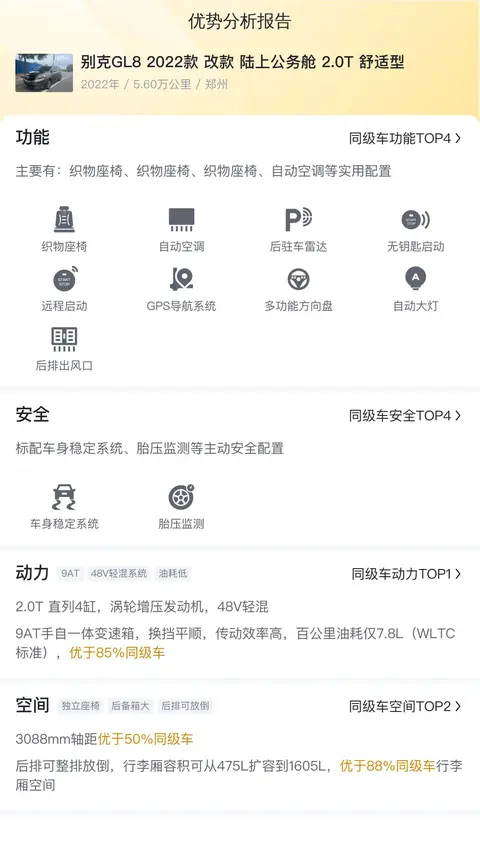 同时,用车成本也不低,因为同级车的最低用车成本是5777元/年,最高是11740元/年,别克GL8 2022款改款陆上公务舱2.0T舒适型是9323元/年,所以不算低。