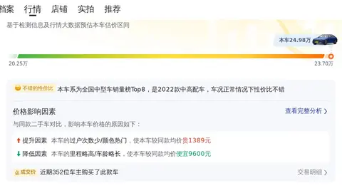 目前的市场行情,这款车的二手车行情大致在20.25万至23.70万之间。具体的售价会根据车辆的状况(如车龄、里程、外观内饰保养情况等)以及市场供需关系等多种因素而有所不同。在购买二手车时,建议您综合考虑车辆的实际状况、市场价格走势、维护保养成本等因素,做出明智的购车决策。关于用车成本方面,根据懂车帝的大数据分析,该车型的平均年度开销大约在1.28万元左右。需要注意的是,个别车主的使用方式和维护习惯可能会使实际花费与估算值存在一定的出入。