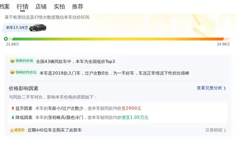 该车在外观、内饰、功能等方面均表现出色,无明显瑕疵,工况良好,能够正常行驶和使用。车辆经过专业的检测和评估,确保了质量和安全,让买家购买无忧。车辆的历史清晰,没有重大事故记录,也没有经历过水淹或火烧等情况,有着良好的车辆历史和信誉。车辆配置丰富,包括天窗、导航、倒车影像等实用功能,不仅提升了驾驶的便捷性和安全性,也增加了驾驶的乐趣。该车具有较高的性价比,比新车价格更加优惠,而且由于车辆保值率高,即使未来再次出售,也能获得相对较高的价格,减少了资产的贬值。该车吸引了众多买家的关注和竞购,显示出其受欢迎程度和市场认可度。