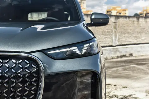 作为中期改款车型,2025款瑞虎8 PLUS在外观方面进行了较大的调整。新车前脸采用了大尺寸的进气格栅,内部融入了齿刃点阵式设计,视觉效果更为精致大气。两侧的大灯组采用了分体式布局,日行灯点亮之后呈现V字造型,主大灯则融入在保险杠两侧,并加入了熏黑的元素。