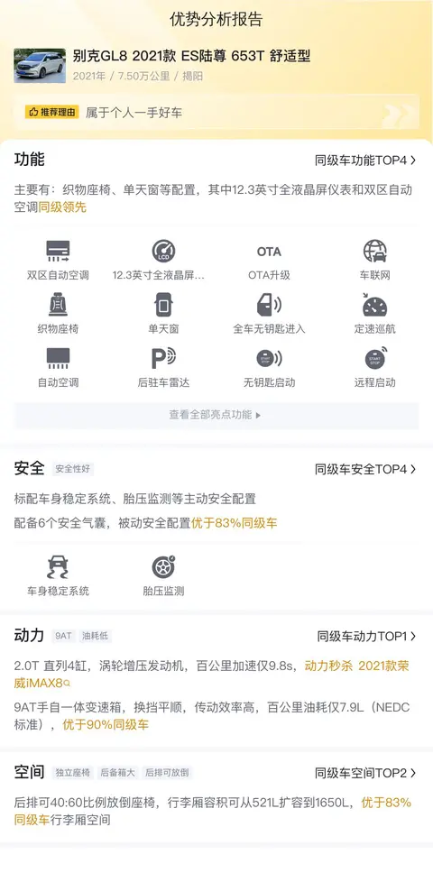 综上所述的新车含税价、用车成本、市场行情、优势分析、同款比价等数据仅供参考。在配置部分,因为二手车非标品,车辆可能会存在配置改装的情况,具体车况信息需要线下结合车辆实际情况进行综合参考。