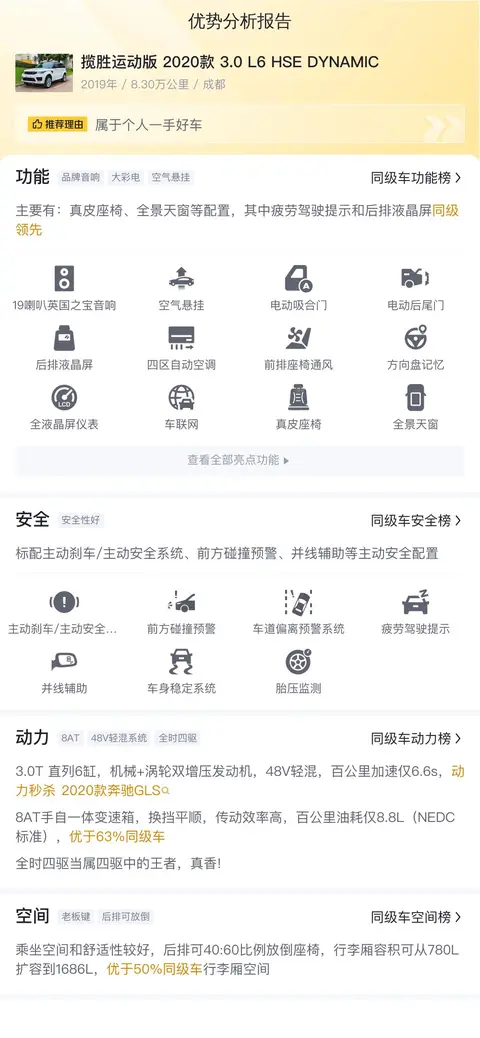 综上所述的新车含税价、用车成本、市场行情、优势分析、同款比价等数据仅供参考。在配置部分,因为二手车非标品,车辆可能会存在配置改装的情况,具体车况信息需要线下结合车辆实际情况进行综合参考。