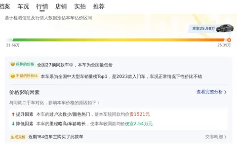 市场行情显示,这款车型的二手车价格大致在21万至25万左右。当然,具体的售价还需要根据车辆的实际情况和买卖双方的协商来确定。至于用车成本方面,按照每年2万公里的行驶里程计算,预计平均成本约为每公里1.14元。这个数字可能因个人驾驶习惯和地区油价等因素而有所波动。
