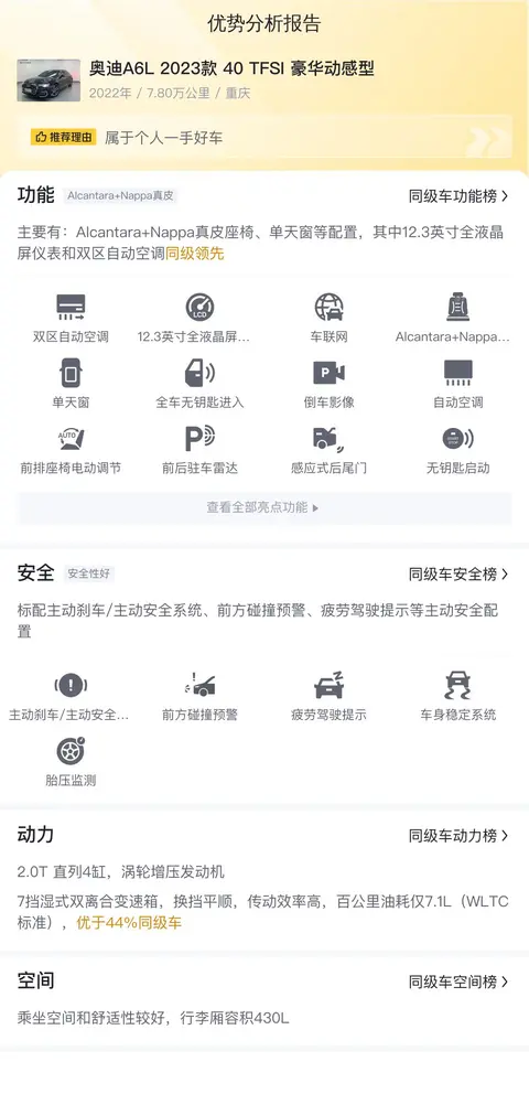 综上所述的新车含税价、用车成本、市场行情、优势分析、同款比价等数据仅供参考。在配置部分,因为二手车非标品,车辆可能会存在配置改装的情况,具体车况信息需要线下结合车辆实际情况进行综合参考。