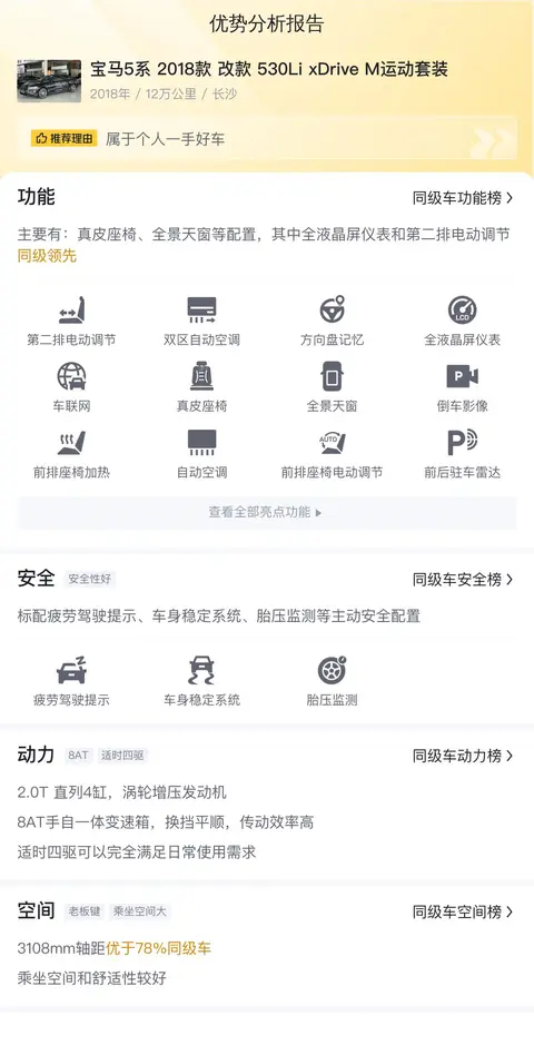 综上所述,宝马5系 2018款 改款 530Li xDrive M运动套装凭借其出色的性能、豪华的内饰、丰富的配置和较高的保值率,成为了一款备受推崇的中大型豪华轿车。无论是在日常通勤还是长途旅行中,它都能为驾乘者带来卓越的驾驶体验和舒适的乘坐感受。如果你正在寻找一辆性价比高、性能出色且豪华舒适的轿车,那么这款宝马5系绝对是一个值得考虑的选择。