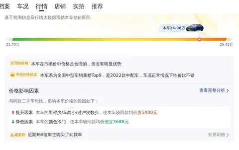 车源地和上牌地都在揭阳。2022年10月首次上牌,在此期间0过户。这辆车的新车含税价是38.15万,目前二手车售价是24.98万,相当于开2年多有13.17万的差价。