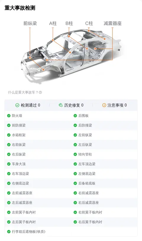 在泡水检测方面,车辆同样以23项全通过的成绩印证了其无泡水的历史。