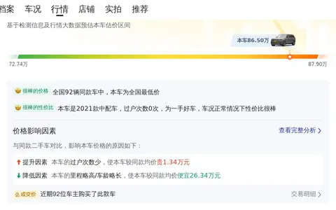 优点:揽胜 2021款 3.0 L6 传世加长经典版的市场行情价是72.74万-87.90万,它的报价是86.50万,虽然报价偏高,但是保值率高,而且该车的里程数较少,只有17万公里,整体不错。