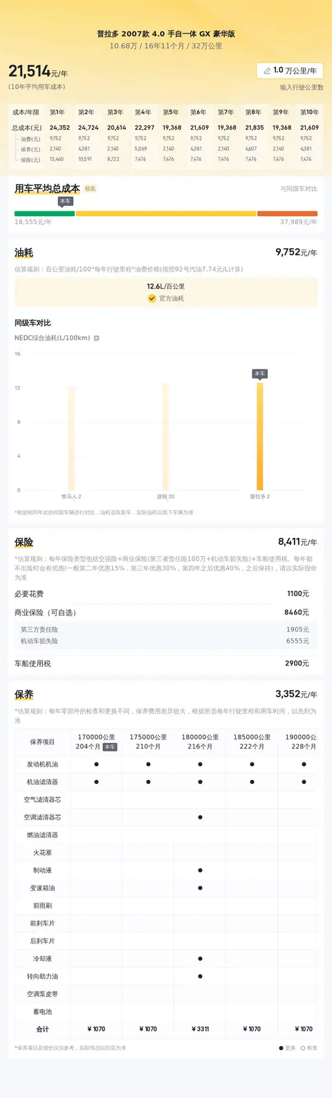 据估算,普拉多 2007款 4.0 手自一体 GX 豪华版的用车成本较低,因为同级车的最低用车成本是21998元/年,最高是30967元/年,而普拉多 2007款 4.0 手自一体 GX 豪华版是22177元/年,所以较低。