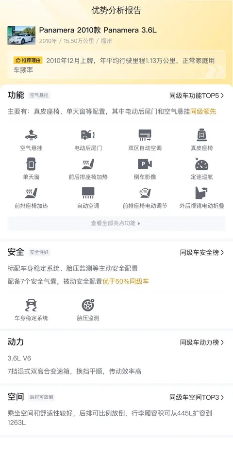 据估算,Panamera 2010款 Panamera 3.6L的用车成本是31259元/年,说实在的,用车成本确实不低。