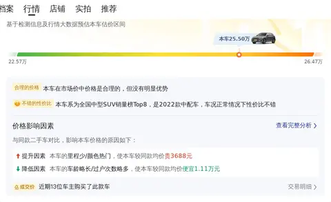 车源地和上牌地都在佳木斯。2022年03月首次上牌,在此期间过户1次。新车含税价为45.52万,现在的二手车报价是25.50万,相当于开2年多便宜了19.02万。