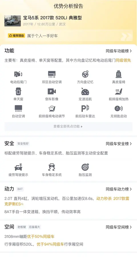 在二手车的选择过程中,车辆的综合表现至关重要。接下来,我们将通过对比分析该车型与同级别竞品在安全、动力、空间等方面的性能,突出其核心竞争优势。让您从各个方面都对该车型有一个深入的了解。