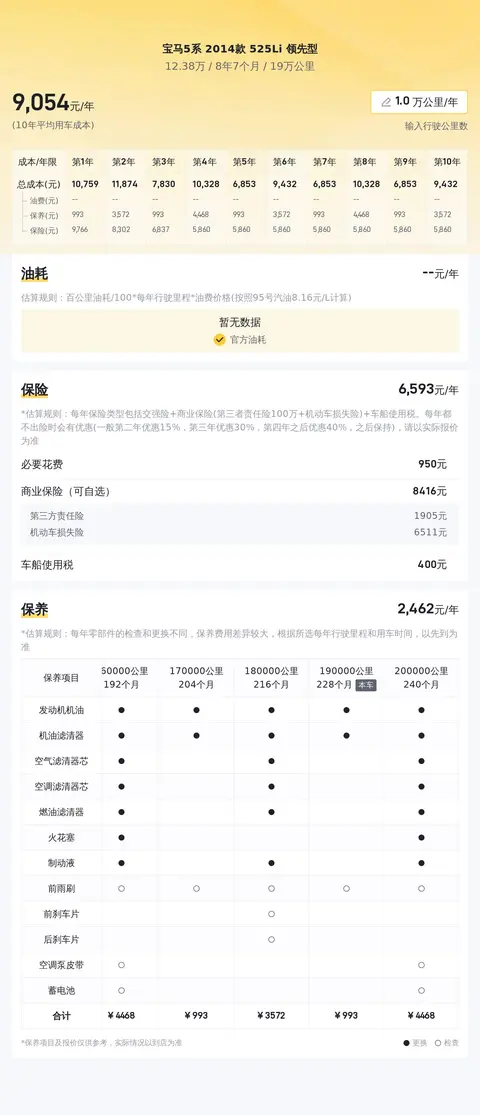今天给大家介绍的这款宝马5系2014款525Li领先型来自广东广州,上牌日期为2016年2月,表显里程19万公里,香槟色车身深色内饰,过户次数1次。新车指导价46.66万,二手车报价12.38万包含过户费。