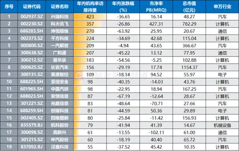 对于可关注的标的方面,筛选车联网概念股,截至9月18日收盘,累计共有19股年内机构调研量超50次。其中,兴瑞科技、科大讯飞、坤恒顺维、千方科技、一汽解放、广和通分别获423次、357次、270次、224次、209次、207次调研,易华录、长安汽车、英唐智控调研量也均在百次以上。此外,亚信安全、中国汽研、安恒信息等股年内也获机构重点关注。