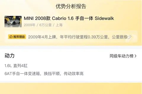 总的来说,这款二手MINI 2008款 Cabrio 1.6 手自一体 Sidewalk以其合理的价格提供了不错的性价比。它独特的品牌魅力和个性化的外观设计,让它在众多车型中独树一帜;紧凑的车身和灵活的操控,非常适合城市驾驶。然而,潜在的维修保养成本和后排空间局限可能是需要考虑的因素。在做出购买决定之前,建议您充分了解车辆情况,并根据自己的实际需求和预算做出选择。