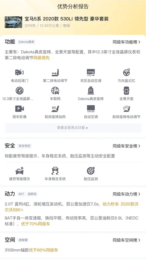综上所述的新车含税价、用车成本、市场行情、优势分析、同款比价等数据仅供参考。在配置部分,因为二手车非标品,车辆可能会存在配置改装的情况,具体车况信息需要线下结合车辆实际情况进行综合参考。