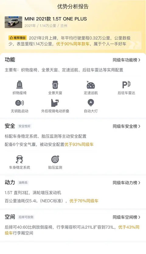 说了这么多,这辆二手MINI 2021款 1.5T ONE PLUS到底咋样,还得您自己来看看。数据再多,也得眼见为实。说不定您一坐进来,就发现更多大数据里没告诉您的秘密了呢。