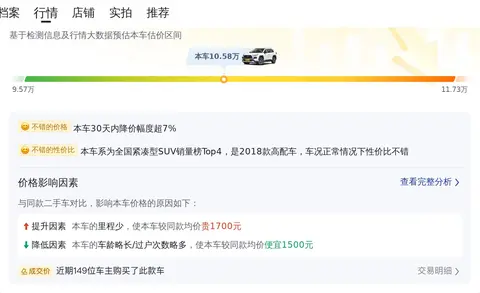 RAV4 荣放 2018 款 2.5L 自动四驱精英 i 版的市场行情价是9.57万-11.73万,它的报价则是10.58万,报价偏高,不占优势,但保值率较高。