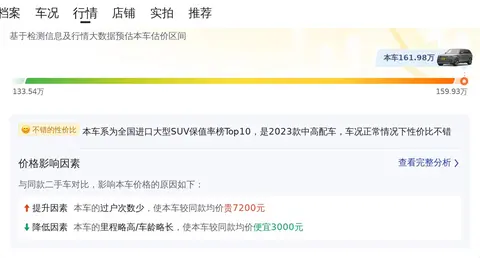 当前市场上,这款车型的二手车价格区间在133.54万至159.93万之间,而该车的报价为161.98万,虽然略高于市场平均水平,但考虑到其较低的里程数以及良好的车况,这一价格仍具有一定的合理性。在用车成本方面,这款车的年均综合用车成本约2.5万元左右,对于一款豪华SUV而言,这一成本在同级别车型中属于合理范围。