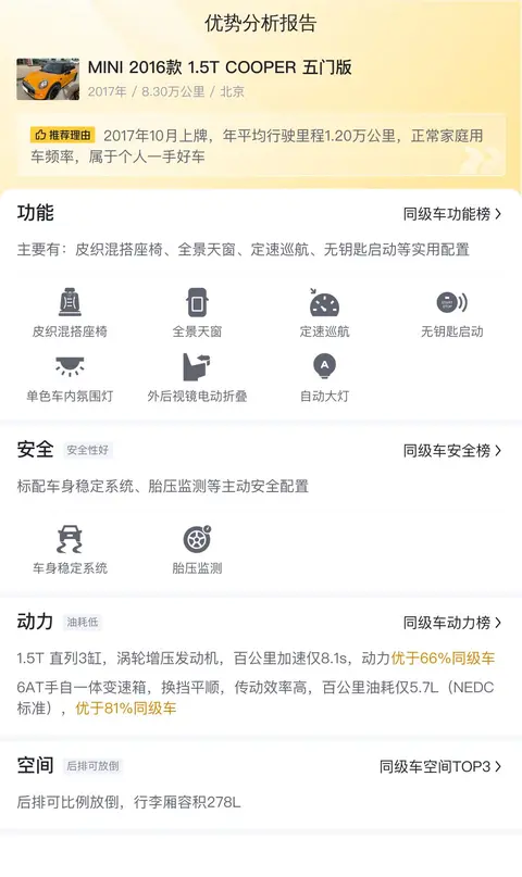 在北京二手车市场上,这辆MINI的报价为10.98万,虽说比市场均价稍高,但考虑到它那优秀的保值率和一直以来的好口碑,这价格也算合理。而且,MINI的后期用车成本相对较低,尤其是维修费用比同类竞品车型要友好,再加上它那让人省心的可靠品质,简直是省钱又省心的代表。