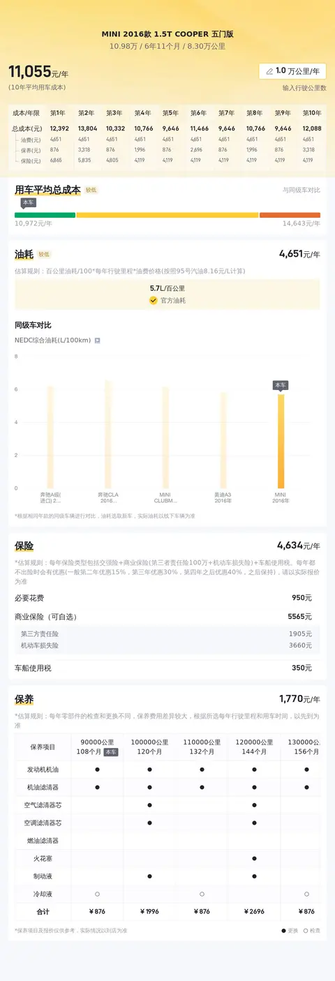 据估算,这辆MINI的10年平均用车成本约为11,280元/年,对于追求时尚与个性的年轻消费者来说,这样的花费完全是可以接受的。选择MINI,就是选择了一种独特的生活方式,而这样的投入,无疑是值得的。