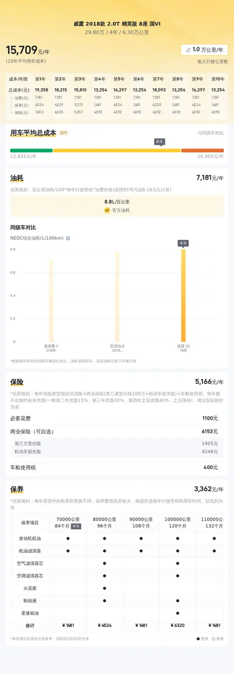 根据懂车帝平台的大数据分析,该车型的十年平均用车成本约为16180元/年,具体的实际费用开销会因用车强度和环境等因素不同而有所改变。