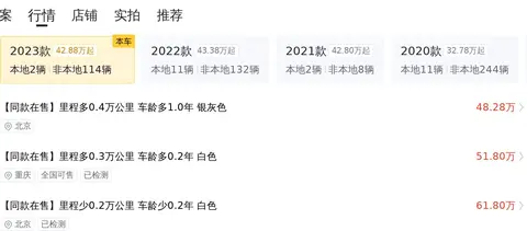 看完了市场行情,是不是还不过瘾,别急,我们再来看看在全国范围内,还有哪些同款车型在售。