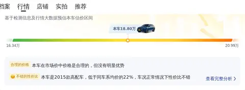 综上所述的新车含税价、用车成本、市场行情、优势分析、同款比价等数据仅供参考。在配置部分,因为二手车非标品,车辆可能会存在配置改装的情况,具体车况信息需要线下结合车辆实际情况进行综合参考。