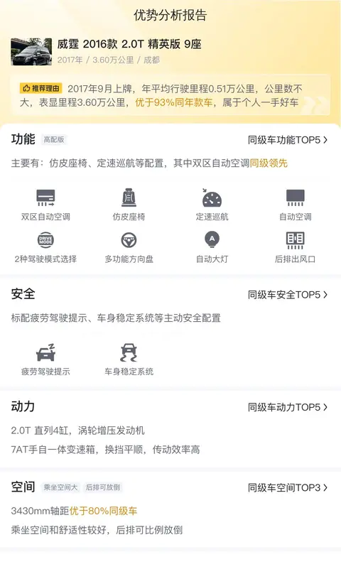 综上所述的新车含税价、用车成本、市场行情、优势分析、同款比价等数据仅供参考。在配置部分,因为二手车非标品,车辆可能会存在配置改装的情况,具体车况信息需要线下结合车辆实际情况进行综合参考。