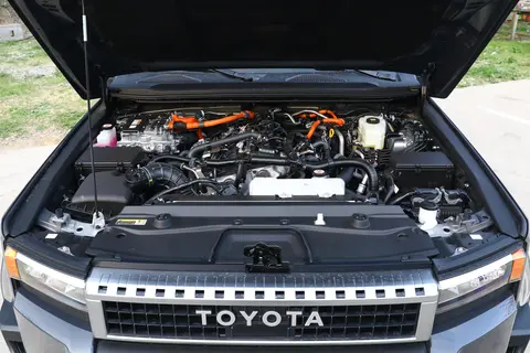 动态体验:在电机的加持下,这款车的驾驶还拥有不错的电感,尤其是起步的时候,表现的很安静,也很轻盈。如果在高速行驶的时候,我们要超车,只需要深踩油门,就能得到充沛的动力,超车非常的轻松。普拉多支持低速四驱模式,它的接近角为30°,离去角为21°,拥有不错的通过性。另外,它拥有运动、越野、雪地等驾驶的模式可选,增加了可玩性。底盘的调教韧性十足,在过滤碎石或者坑洼路的时候,能拥有不错的滤震效果,保持了座舱乘坐的舒适性。另外,它在弯道转弯的时候,悬架对于车身的支撑性也很足,没有太明显的侧倾,无论是越野还是常规驾驶,都比较有信心。