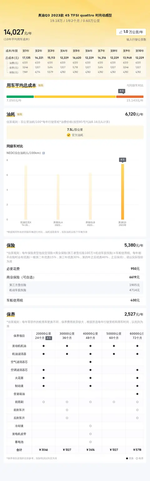 综上所述的新车含税价、用车成本、市场行情、优势分析、同款比价等数据仅供参考。在配置部分,因为二手车非标品,车辆可能会存在配置改装的情况,具体车况信息需要线下结合车辆实际情况进行综合参考。
