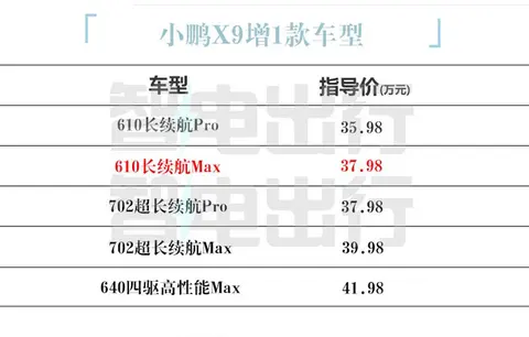9月25日,小鹏X9(图片|配置|询价) 610长续航Max上市,售价37.98万元。新车搭载激光雷达硬件,支持XNGP高阶智能驾驶,售价较702超长续航Max下调2万(原激光雷达入门版),并提供主动后轮转向、七座变四座的魔变空间、零重力座椅等配置。小鹏已经开始向X9车主全量推送XOS 5.3.0 AI天玑系统,新增、优化功能共计70项。