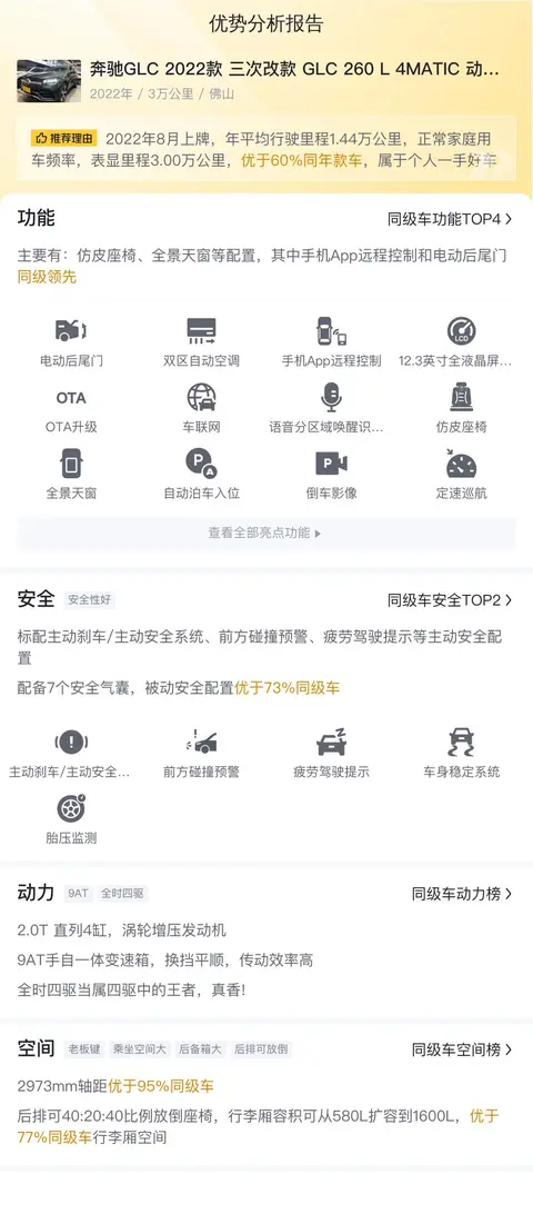 总结:以上就是我们对这辆二手奔驰GLC 2022款 改款三次 GLC 260 L 4MATIC 动感型的全部介绍了,希望可以帮助到您。