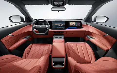 外头变化大,内在也一样给到你惊喜。最明显的地方就是第四代长安CS75 PLUS配置了三块屏,拥有10.25英寸全液晶仪表屏+14.6英寸中控屏+12.3英寸副驾屏,这三屏就直接拉满了整个中控台,确实足够的吸睛,科技豪华感满满。其实此前三屏我们还是更多见于新能源车,燃油车使用三屏还是较为少见的,可玩性方面比起老款毫无疑问是有很大提升的。在交互方面第四代长安CS75 PLUS也表现的优异,支持HUAWEI HiCar、Carlink、T-LINK等,手车交互上足够丰富。内饰细节上除了三屏吸睛外,本身配置了怀挡,取消了大量实体按键,配置了手机无线充电,整个内饰的观感、质感等都可以说是有了很大的变化。