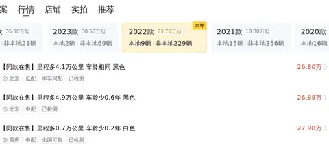 奔驰GLC 2022款 GLC 260 L 4MATIC 动感型,新车含税价为43.65万,现在的二手车报价是28.9万,2022年2月首次上牌,在此期间0过户。