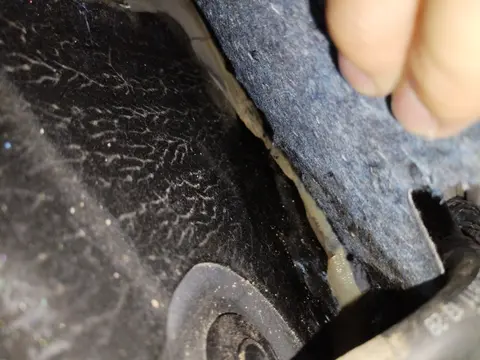 在泡水检测中,本车在左侧门槛内部空腔、右侧门槛内部空腔仅有少量泥沙,以上便是这辆车的所有瑕疵,整体车况良好。