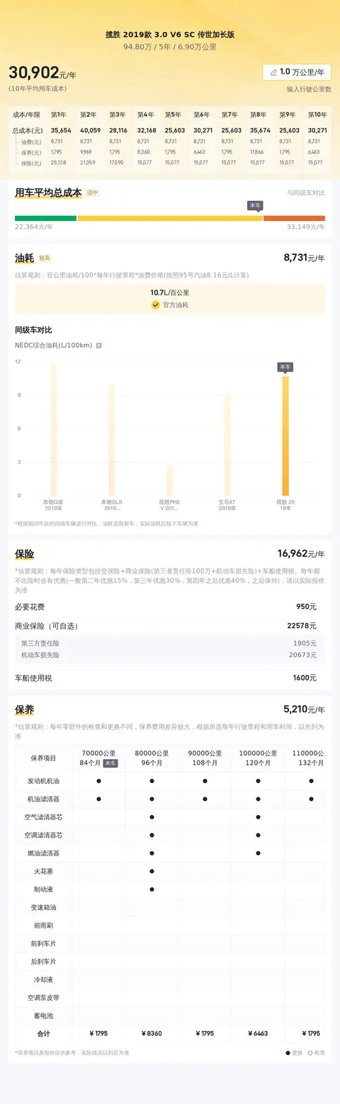在用车成本方面,根据估算,这辆二手路虎揽胜传世加长版的年均综合用车成本约为3.1万元左右。这个数据仅供参考,具体费用还需根据车主的使用习惯和保养情况而定。